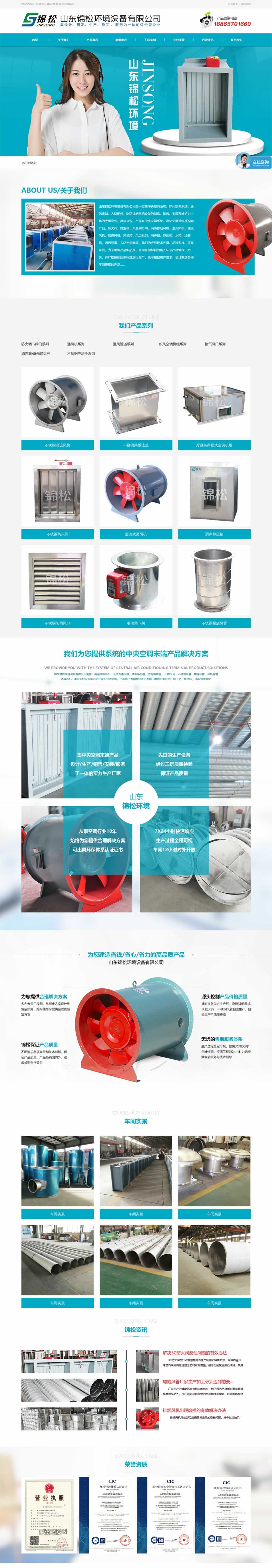 山东锦松环境设备有限公司是一家集中央空调系统、净化空调系统、通风末端、人防配件、消防排烟系统设备的制造、销售、安装及维护为一体的大型企业。具体来说,产品有中央空调系统、净化空调系统及配套产品、防火阀、排烟阀、风量调节阀、消防排烟风机、混流风机、轴流风机、管道风机、风机箱、风口系列、消声器、静压箱、水箱、冷却塔、通风管道、人防密闭阀等。